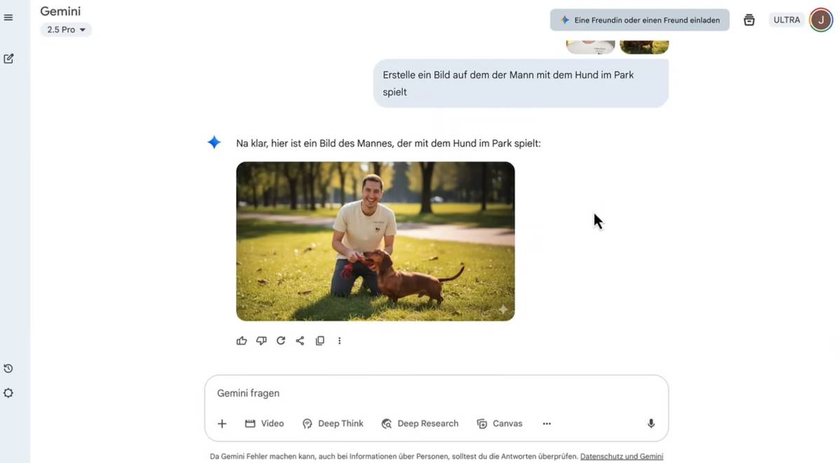 Another outstanding feature is image fusion. Nano Banana makes it possible to seamlessly merge multiple images into a new composition. For example, a person from one photo and a pet from another can be placed into an entirely new environment, with the AI ensuring realistic integration. The consistency of characters and details is another significant advantage. While many AI image generators struggle to maintain the appearance of a person or object across repeated generations, Nano Banana excels at preserving traits even when extensive changes are made to the image. This is particularly valuable for creating image series or for professional applications in advertising and design.